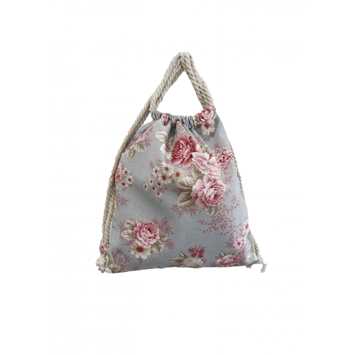 Cómoda y original mochila confeccionada a mano con estampado de flores, ideal todos tus paseos por el campo o la ciudad.
