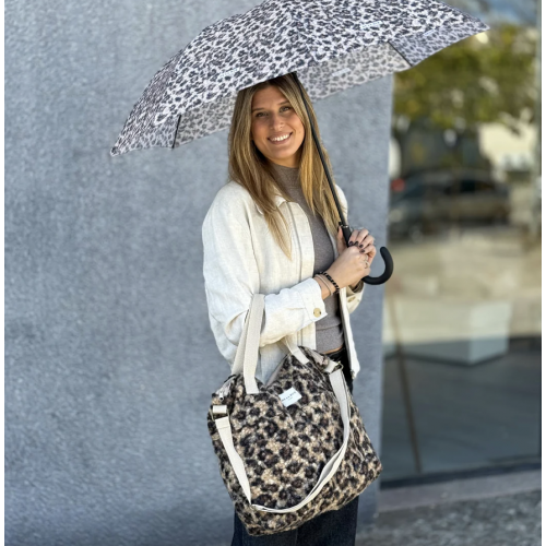 El paraguas que no te vas a quitar de encima. Con el mismo estampado que otros productos para ir siempre súper combinadas y protegidas de la lluvia.