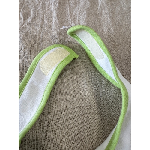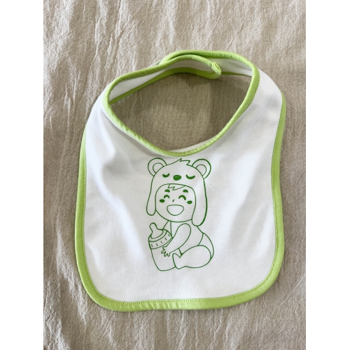 Babero de bebé en color verde. 100% Algodón Ringspun. Doble capa que garantiza una mayor protección. Bies contrastada. Cierre de velcro®.
